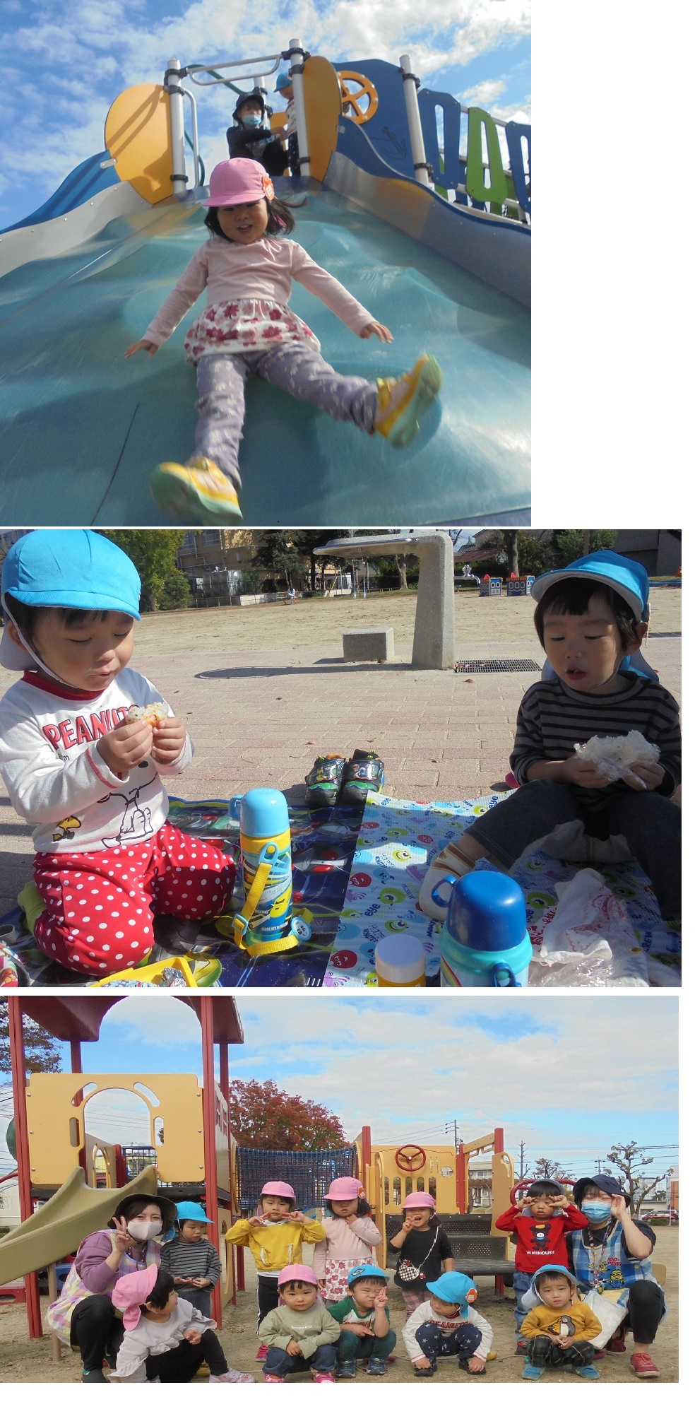 午睡後は桃組さんと園庭でおやつを食べ