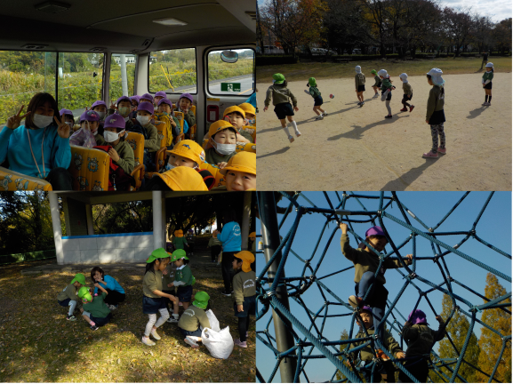 公園に着くと、とっても広い公園にびっくり&大喜び!!!ボールで遊んだり、落ち葉やどんぐりを拾ったり、遊具で遊んだり・・・・