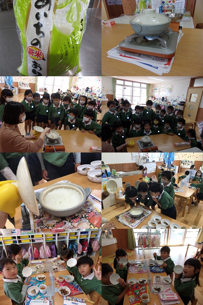 蒸らしの時間もみんなでしっかり時計で計って、蓋を開けるとふっくら真っ白ツヤツヤ!上手に炊けていました!