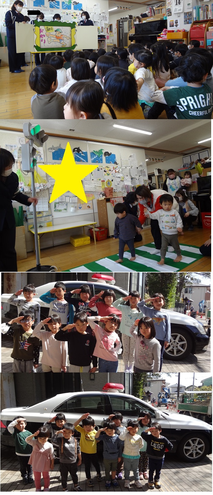 紙芝居を読んでもらい横断歩道の渡り方を知り