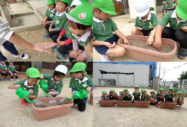 5月16日に林檎組(年長)の子ども達がひまわりの種まきを行いました。