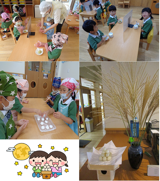 年長さんは、お月様にお供えするお月見団子も作りました。