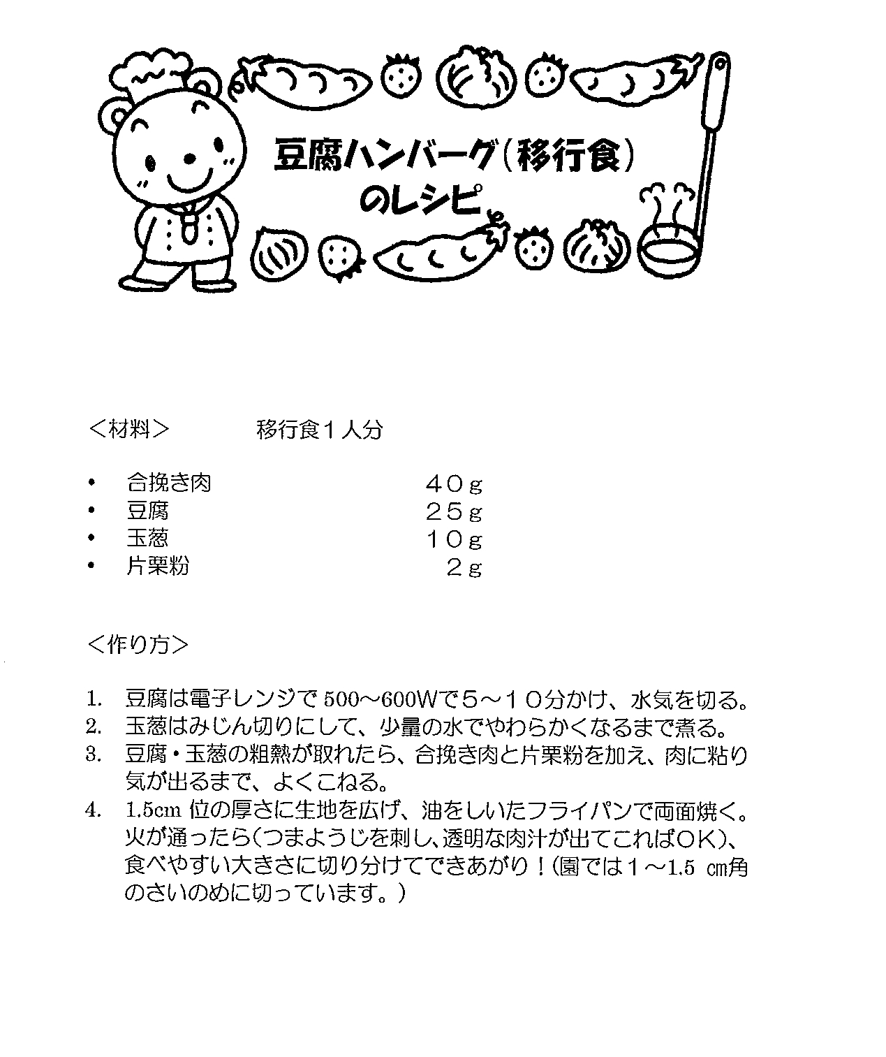 【東神の倉清凉保育園】豆腐ハンバーグ(移行食)のレシピ