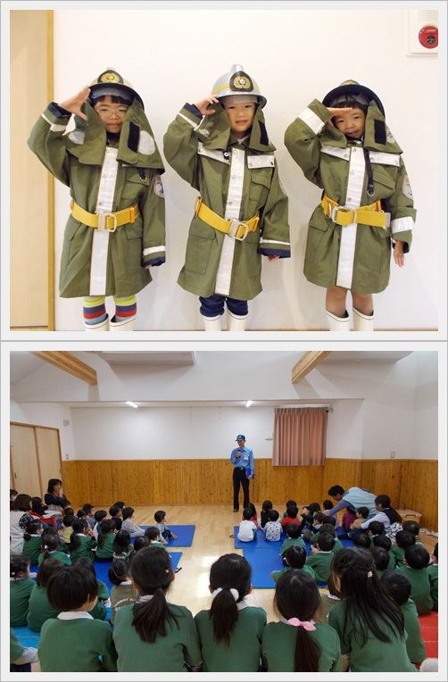 また、紫陽花組のお友だちは特別に消防士さんの服を