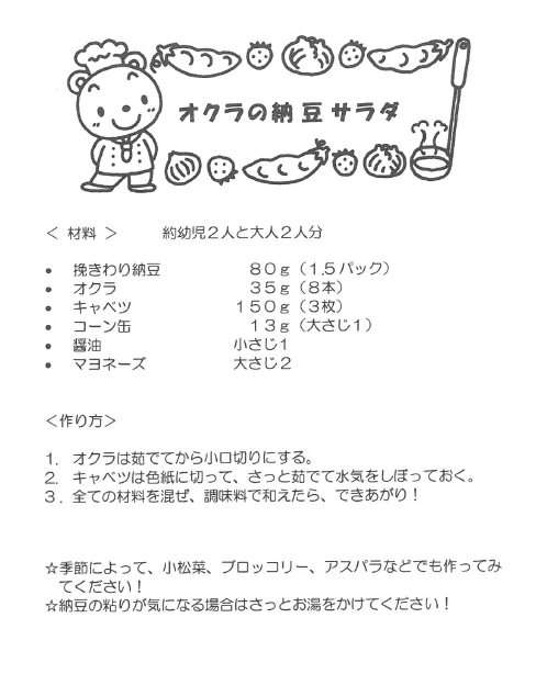 【認定こども園 神の倉清凉保育園】「オクラの納豆サラダ」のレシピ