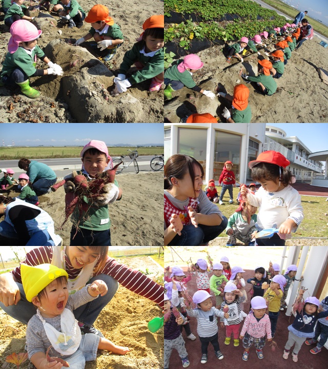 先日、幼児組は碧南あおいパークへ、乳児組は園の畑で芋掘りをしました。
