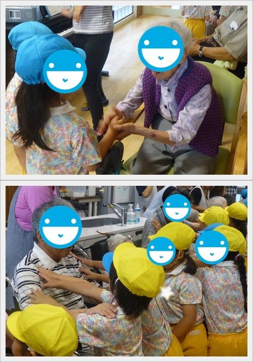 笑顔のこどもたちにつられるように入居者様も職員も手を振ったり、叩いたりとフロアいっぱいに笑顔があふれていました。