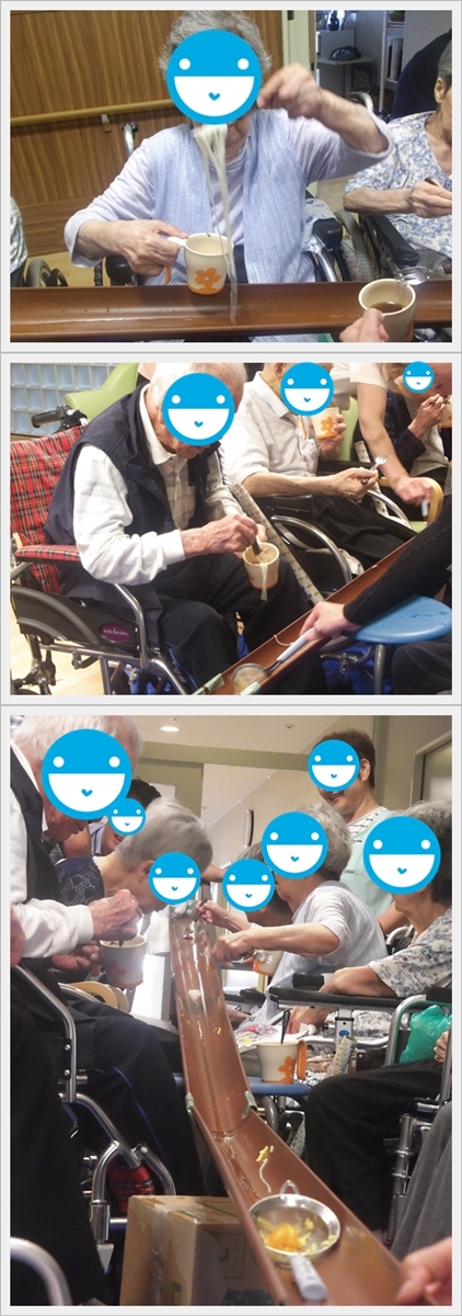 中には、上手に掬えなかった他の入居者様に自分の素麺を分けるような優しい光景も見ることができました。