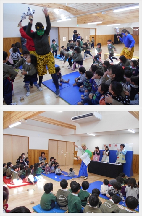 2月2日(木)に一日早く節分会をしました。節分の由来の話を聞いたり、本物の鰯と柊も見ました。