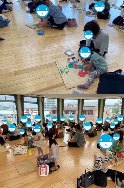 顔や模様の絵を描く時間になると、色々な色を使って自由に