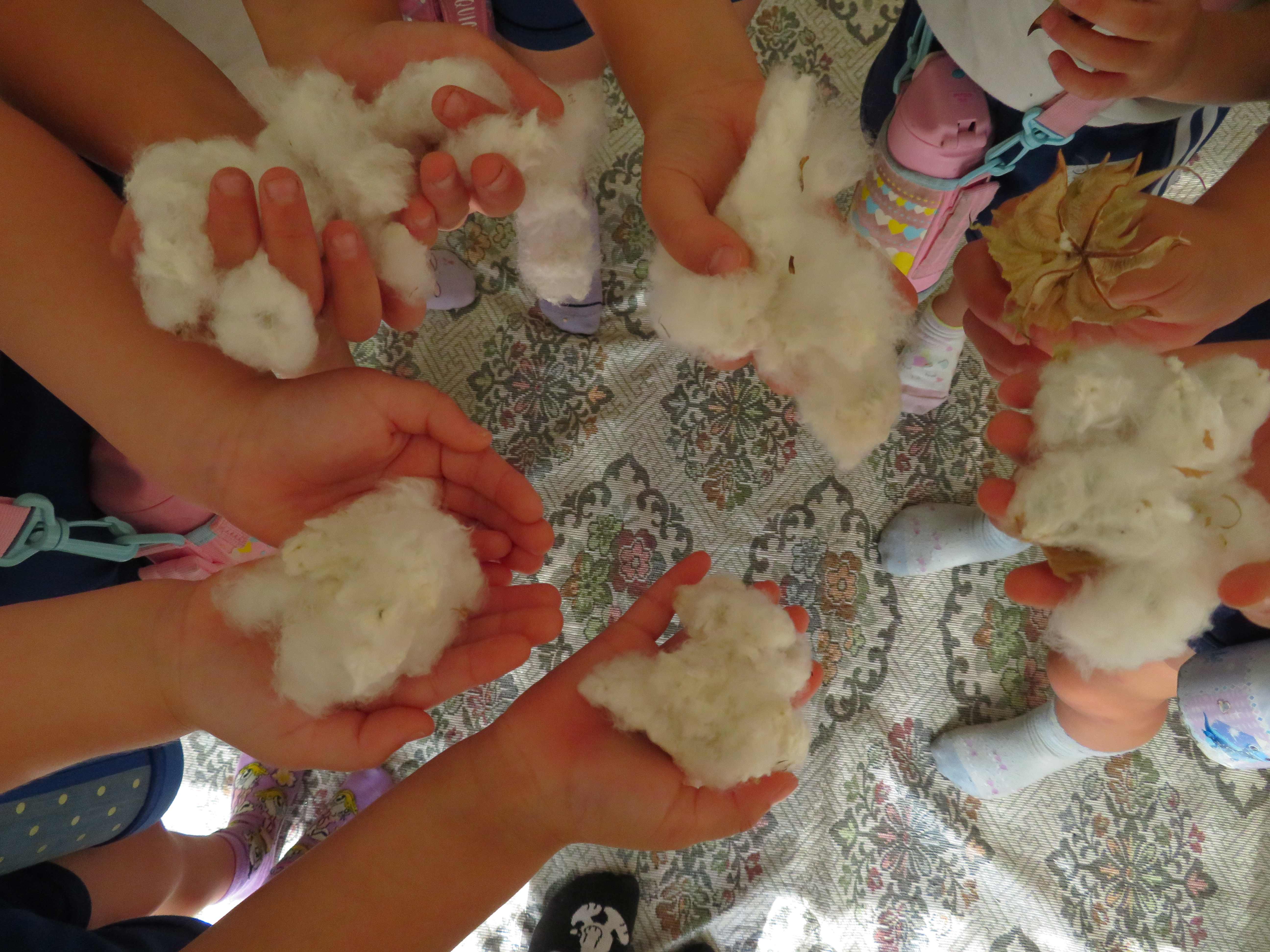 日本の綿とアメリカの綿があることを教えてもらった、年長さん。