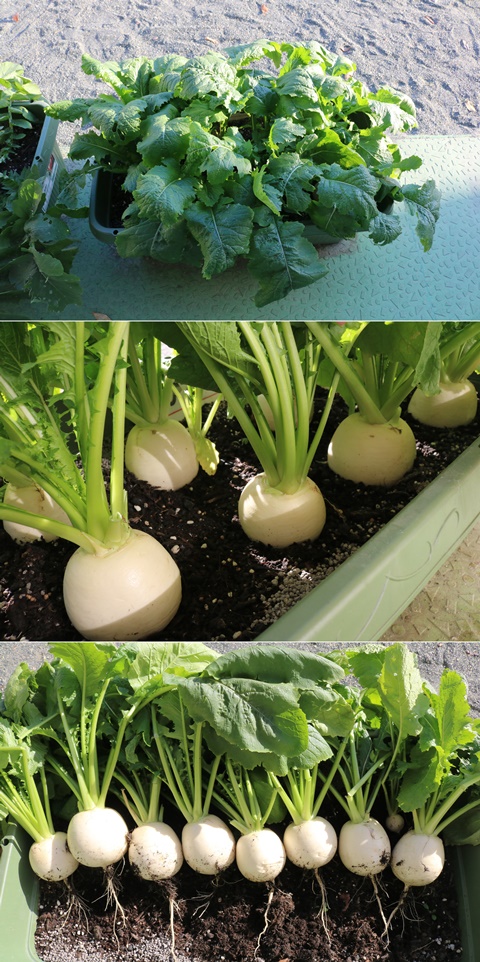 幼稚園のプランターで大きなかぶが収穫できました。