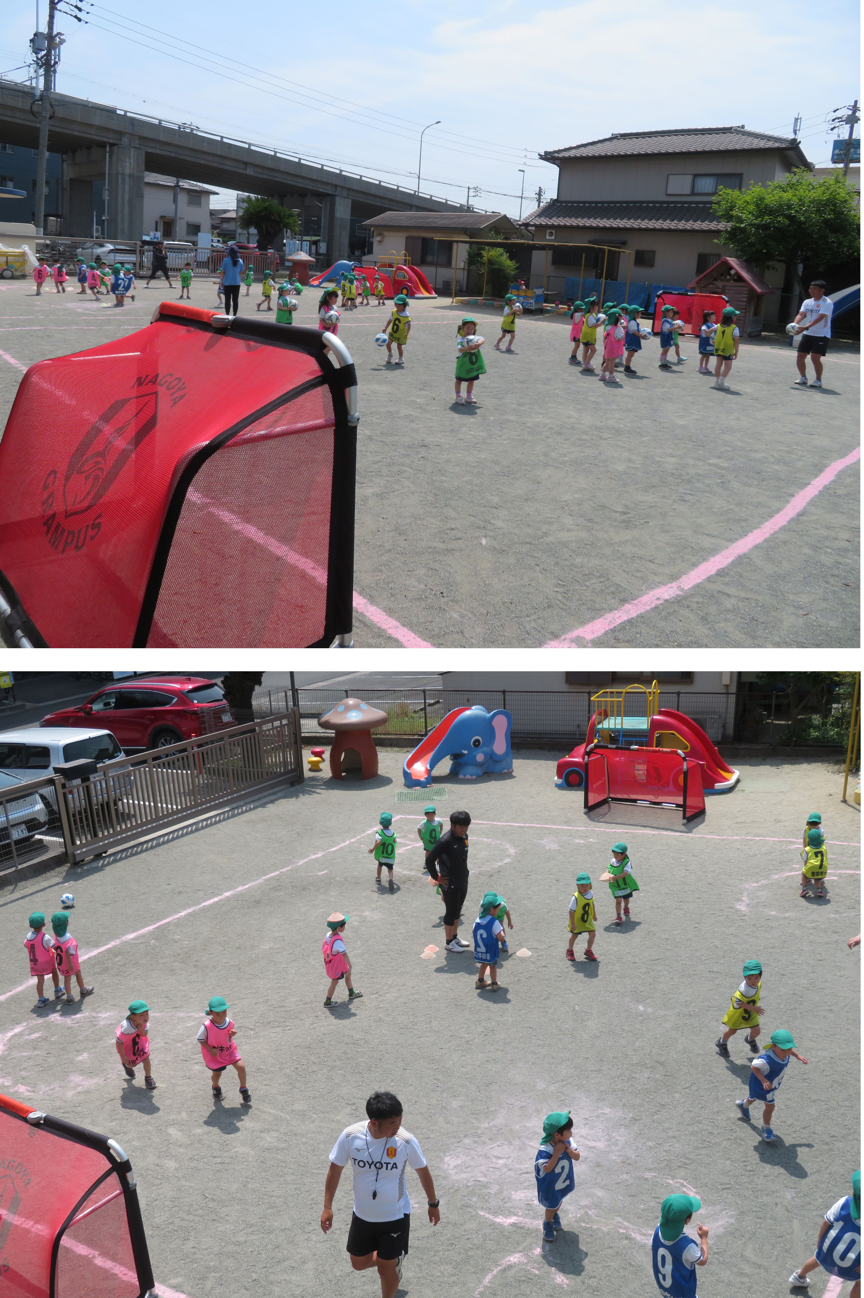 年中組の子どもたちは、初めてのサッカー教室。
