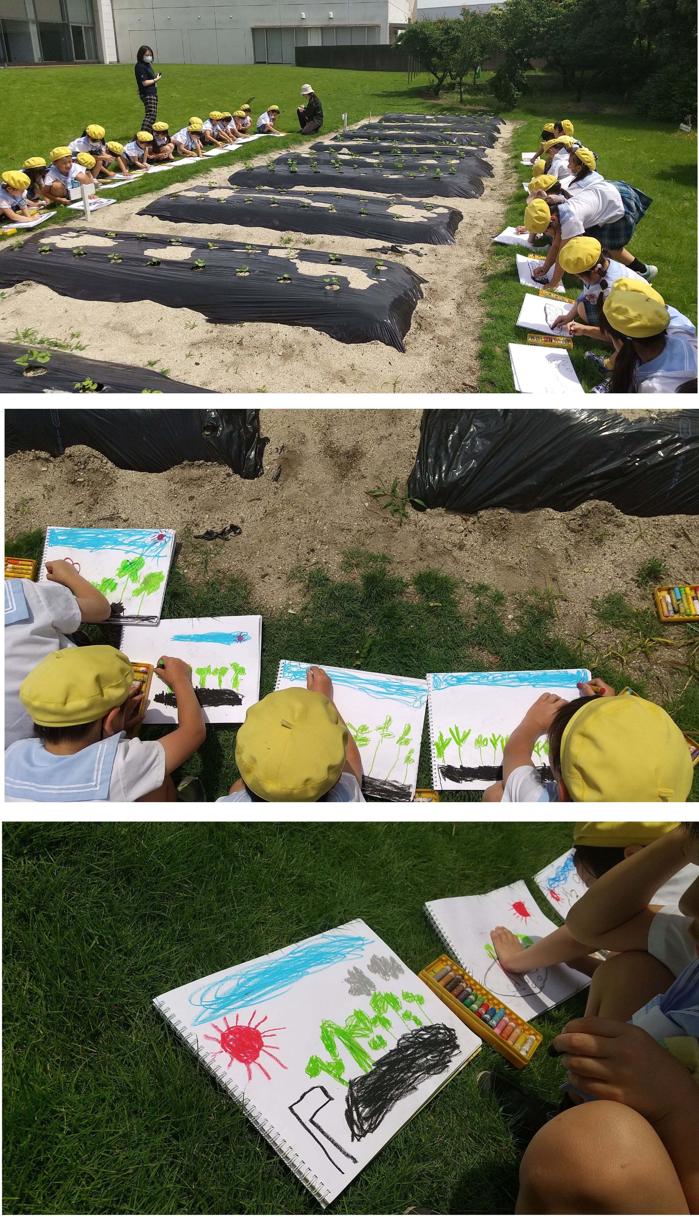 子どもたちはじっくり観察してから、自由画帳に観察画を描きました。