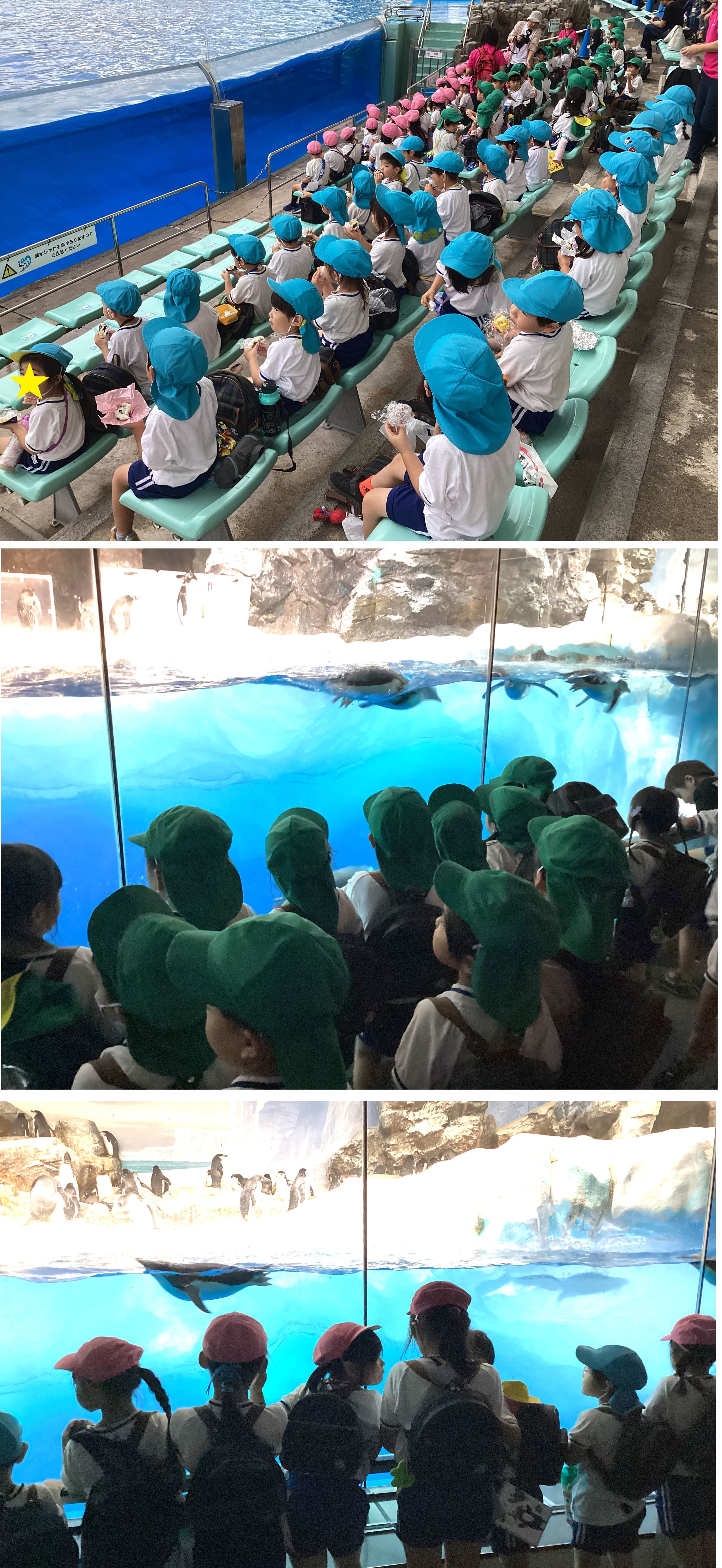イルカショーを見たり、大きな水槽でたくさんの魚を見ることができ、大喜びの子どもたち。
