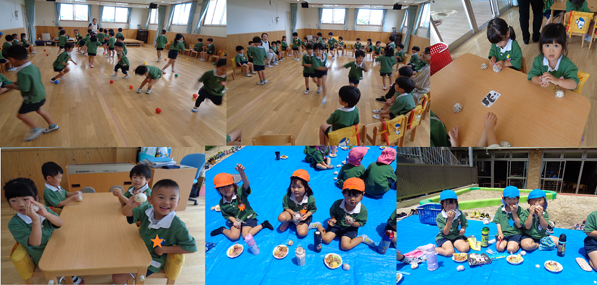 色当てゲーム、追っかけ玉入れ、椅子取りゲームなど盛りだくさんのゲームをして楽しみました。