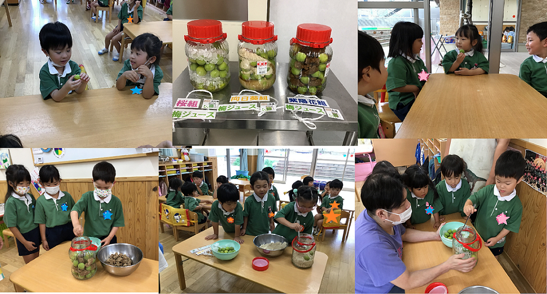 今日は、幼児クラス(桜・向日葵・紫陽花組)で梅ジュースの仕込みをしました。