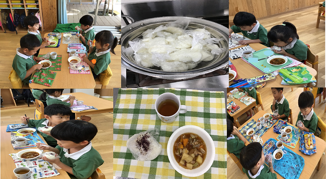 「モチモチしてるね」「途中までスプーンで食べたけど、最後はおにぎりにしたよ」等、いろいろな会話が聞こえてきました。