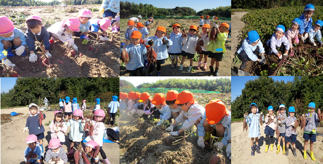幼児クラス(桜、向日葵、紫陽花組)の子ども達で畑へ芋掘りに出掛けました。