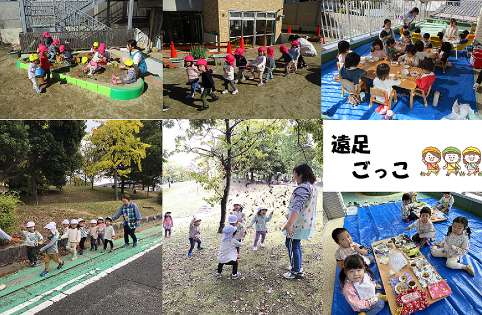 11月8・9日に乳児クラスで遠足ごっこを行いました。