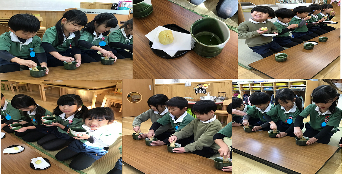 お抹茶とお菓子を前に「お点前頂戴いたします」の挨拶も板についてきたようです。茶碗の持ち方や飲み方も上手になっていました。