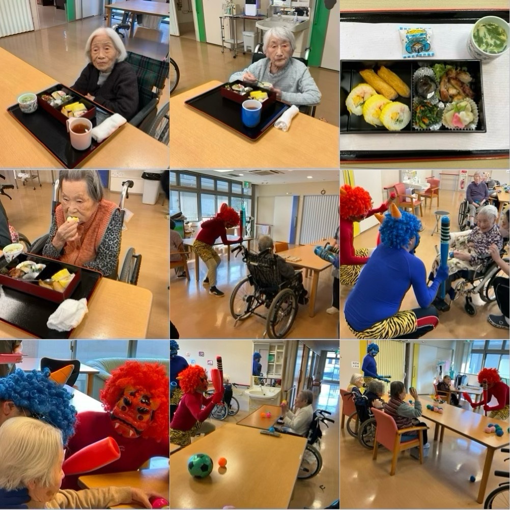 昼食には、恵方巻に因み、巻き寿司、稲荷寿司、茶わん蒸し、節分豆等々を召し上がっていただきました。