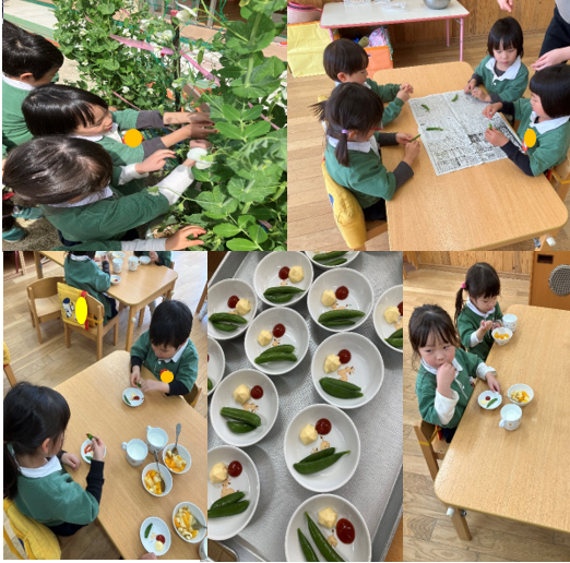 【徳重清凉保育園】スナップえんどう採ったよ!2024年4月4日