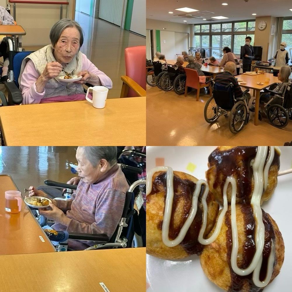 4月の初めに、おやつにたこ焼きをご提供した際の様子です。