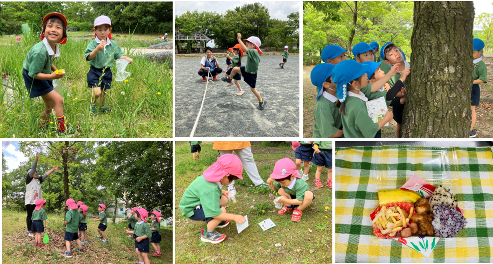 園庭とは違う戸外遊びをしたり、自然に触れたりと楽しい遠足ごっこになりました。