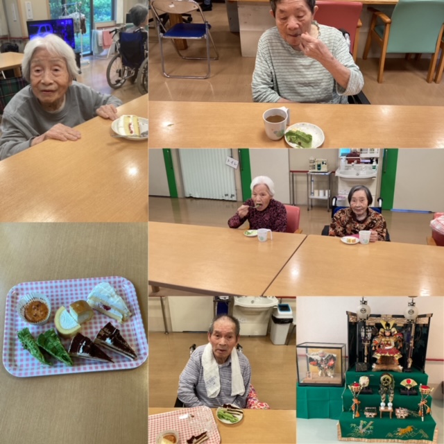 ”少し特別なおやつの時間を”と定期的にご提供しているケーキのおやつの日の様子です。