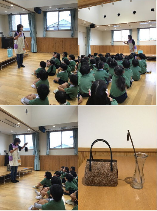 また、職員のお父様が昔趣味で「ミノムシ鞄」を作ったということで、子ども達にも見せてくれました。