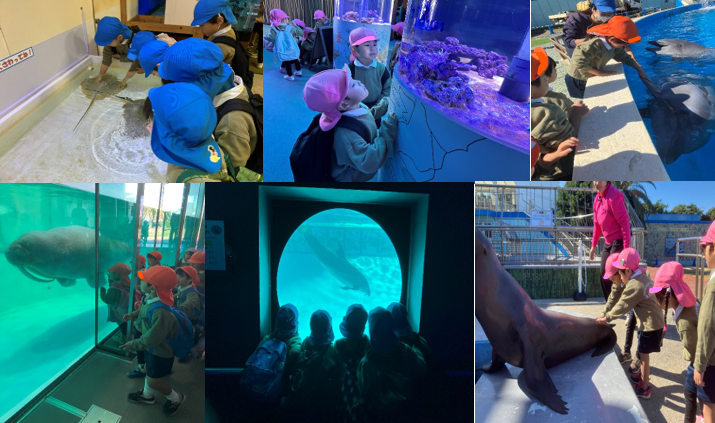 ビーチランドに着く前から「イルカ見る!」「ジンベエザメはいるかな?」「チンアナゴ見たい!」など、楽しみにする子ども達でした。