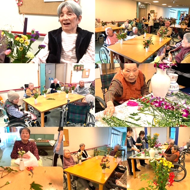 「もうすぐお正月が来るね」と仰られ、お好きな花材に手を伸ばされ、嬉しそうな表情をされていました。