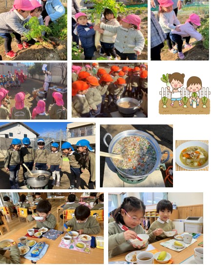 大根と人参は、年少組さんが先日の野菜収穫で収穫してきたものです。