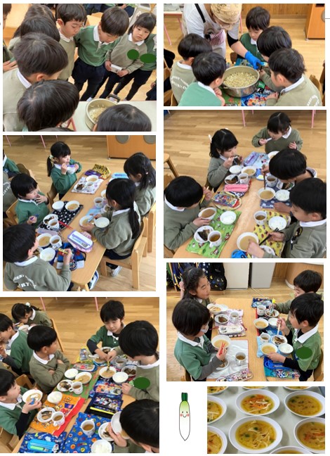 自分達で収穫して作った『切り干し大根』を食べ、子ども達は「おいしい!」「シャキシャキしてるね」と嬉しそうでした。