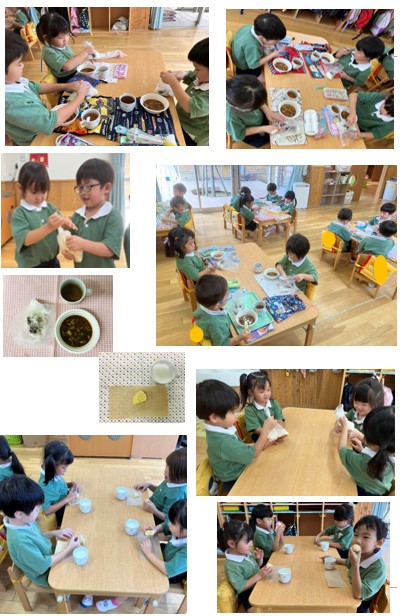 「この袋をお湯で茹でると蒸しパンになるんだよ。」というお話に子ども達は二度目の驚きです。