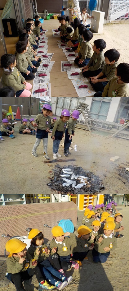 保育士から、薩摩芋に新聞紙とアルミホイルの