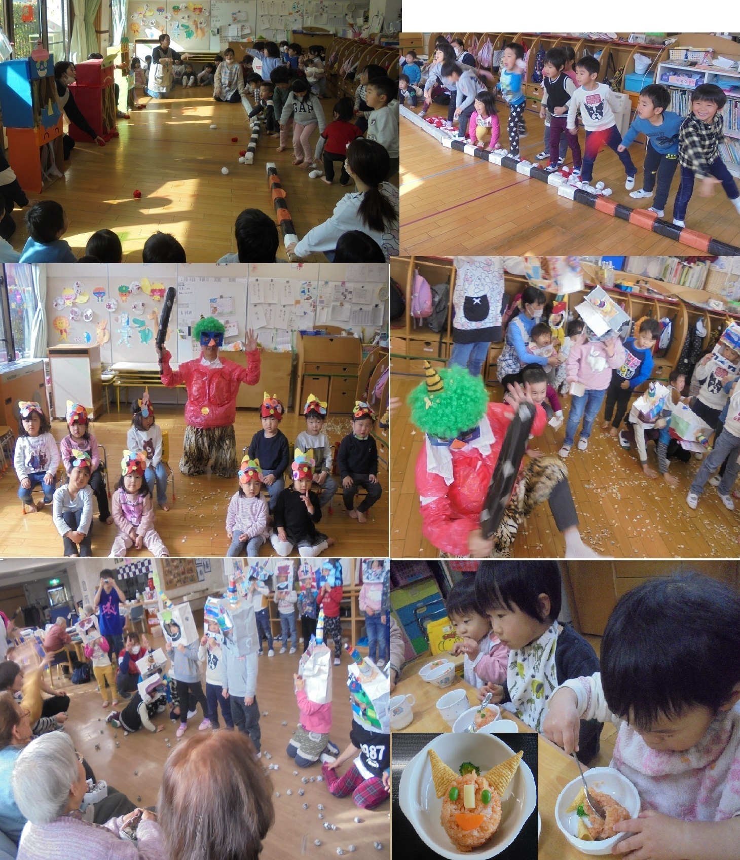 しました。豆まきではお面をかぶり
