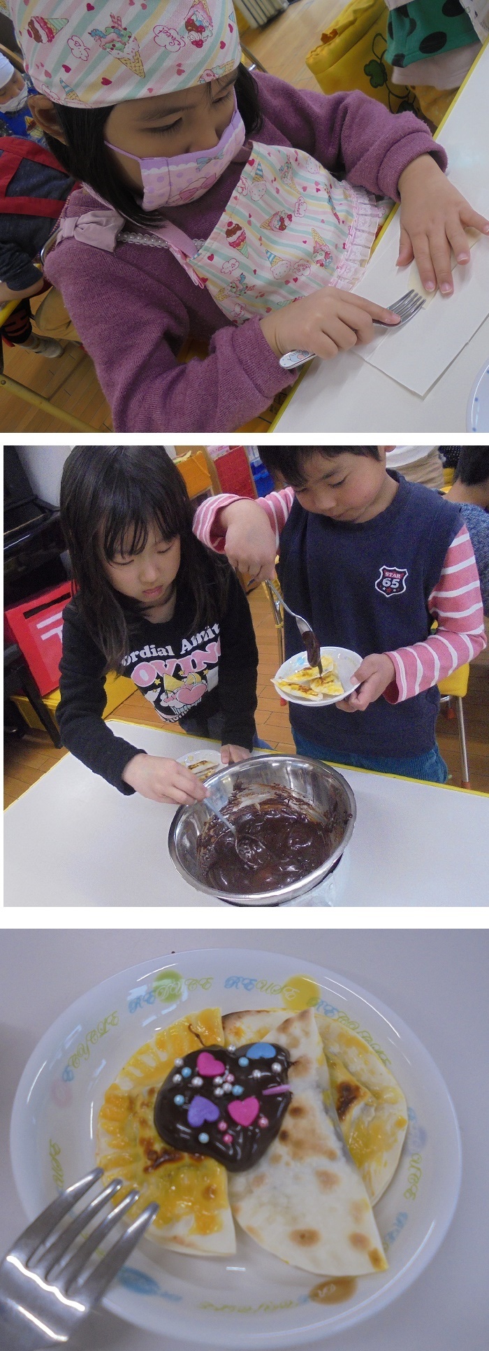 【認定こども園 清凉保育園】2月クッキング「チョコパイ」(もみじ組)