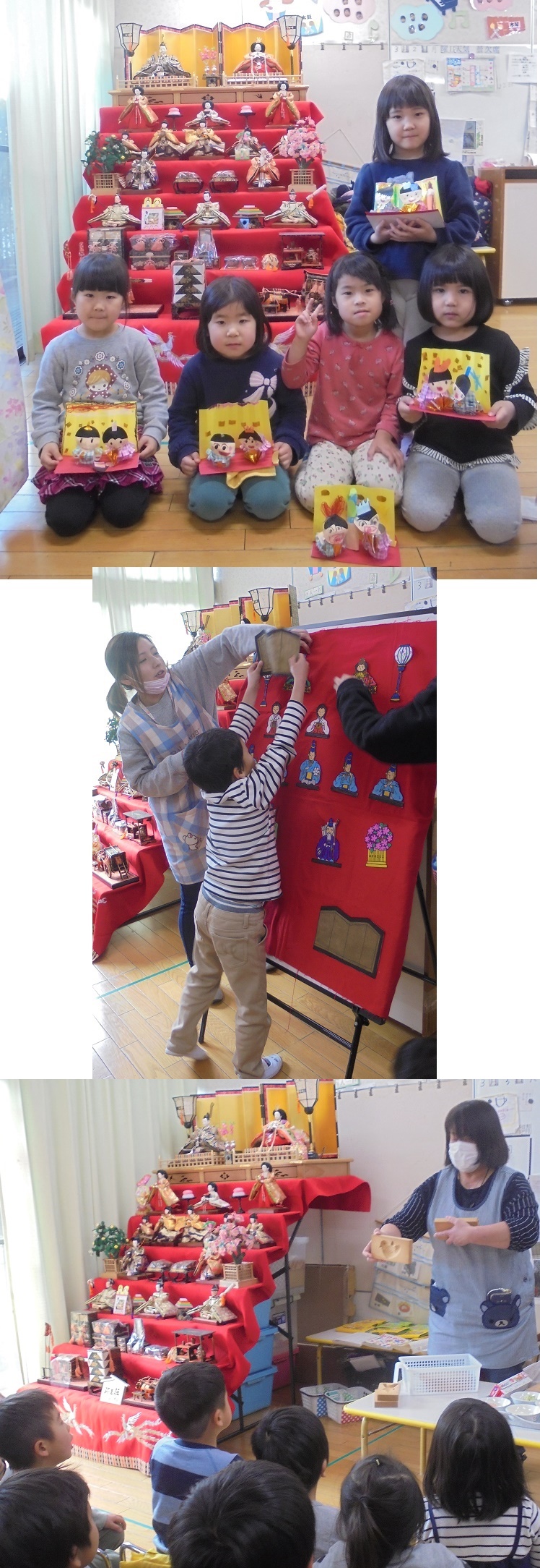 りました。みんなで雛飾りを完成させ
