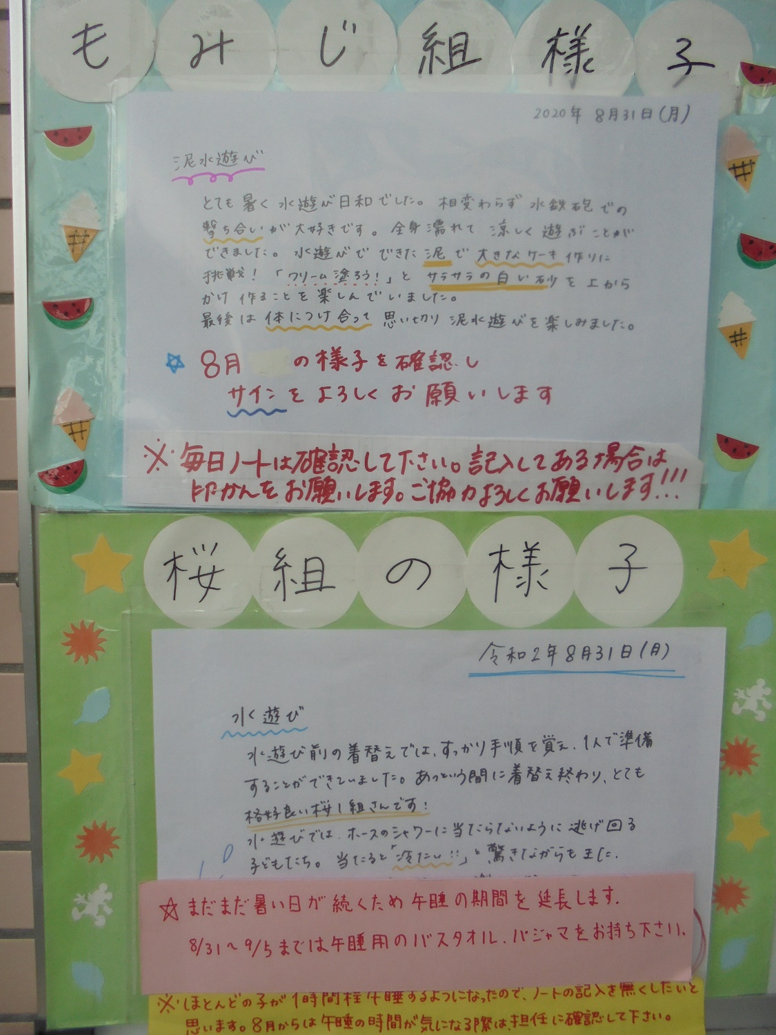 もみじ組・桜1組の様子を1日遅れで掲載