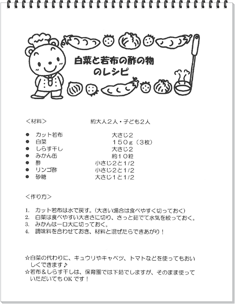 【植園清凉保育園】白菜と若布の酢の物のレシピ