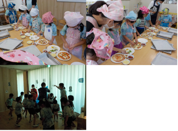 自分たちの作ったピザとゼリー・梅ジュースを食べて、大満足。