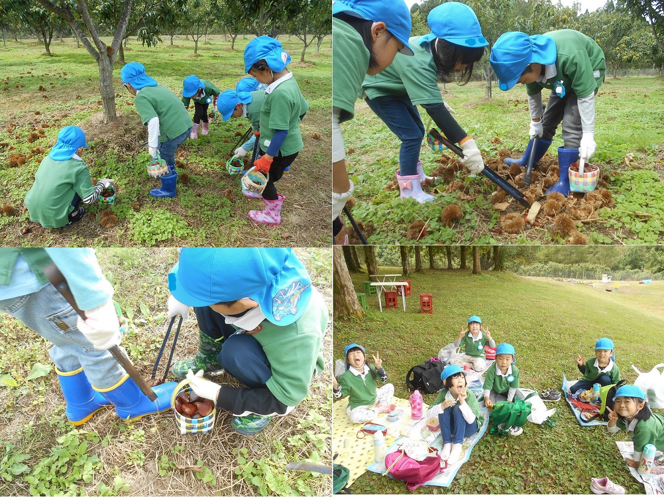 栗畑でお弁当を食べたり、広い芝生の上で
