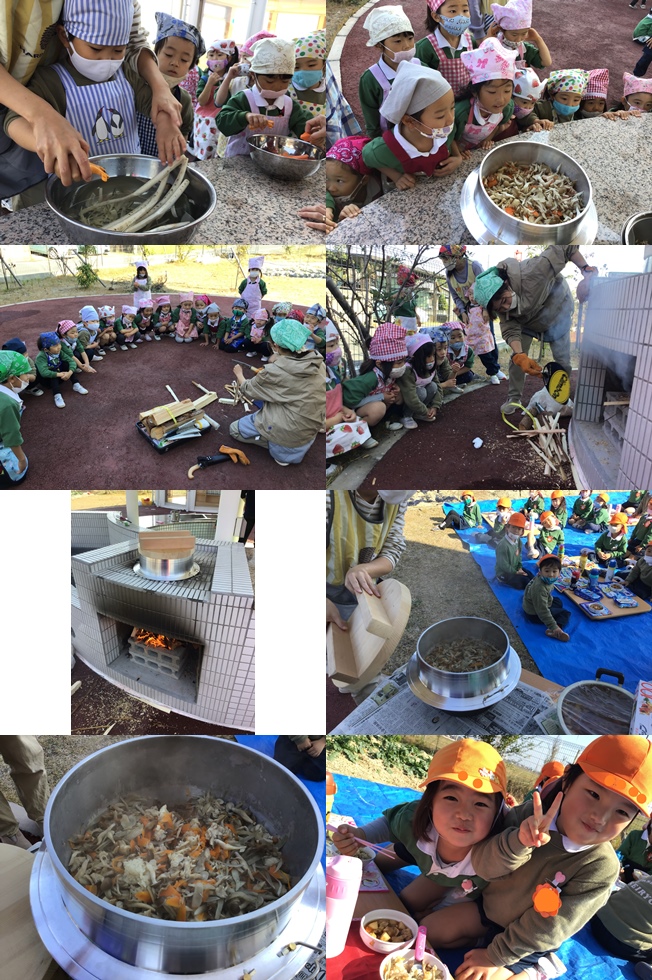 お米を研いだり、人参や牛蒡、茸を切ってお手伝い☆