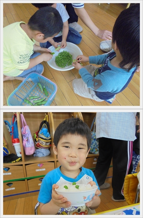 【認定こども園 清凉保育園】畑収穫「グリンピース」