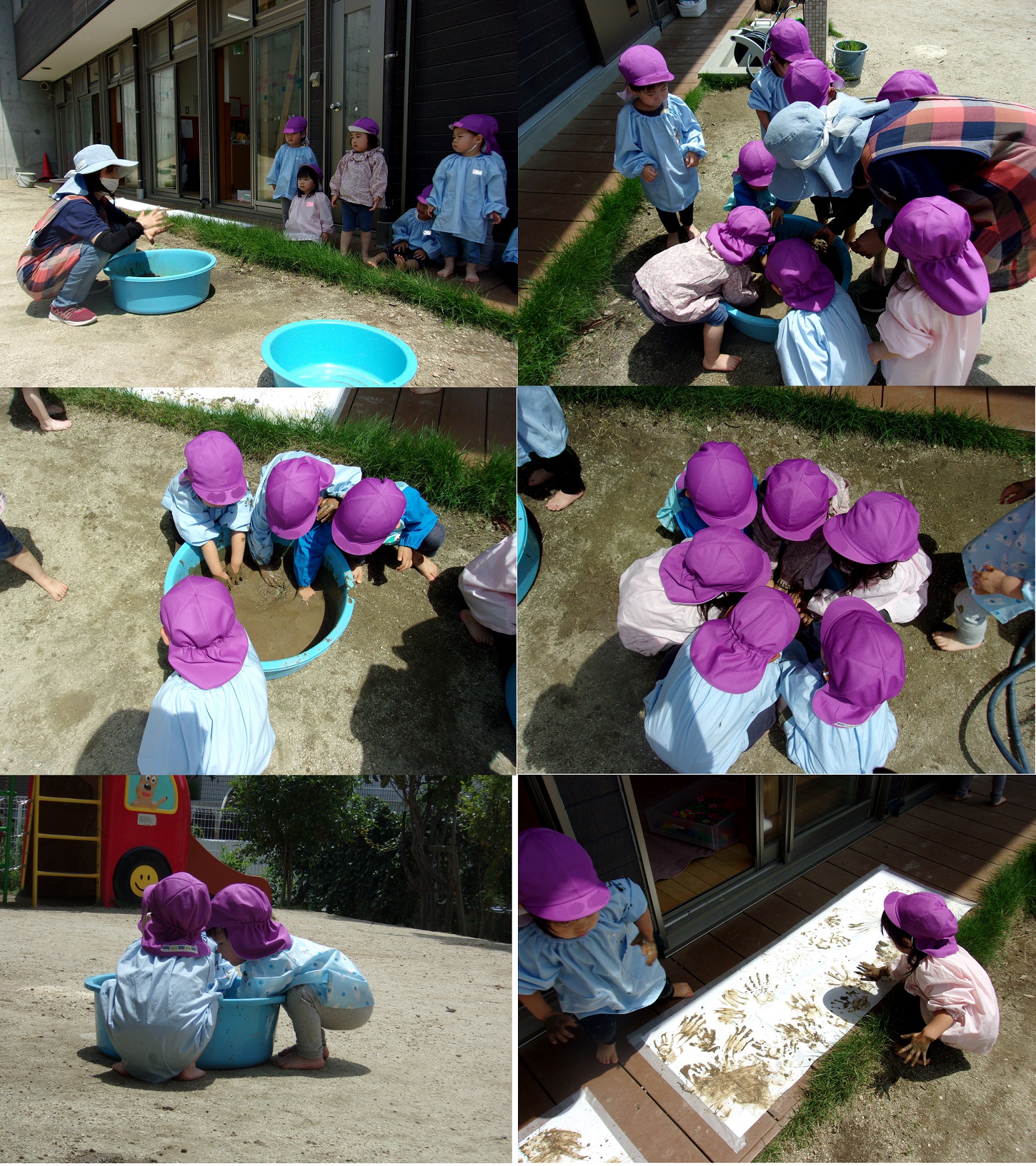 菫組(2歳)さんが泥を使った遊びをしました。