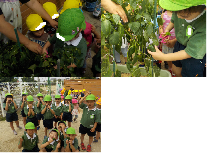 6月25日に林檎組(年長)が畑で育てているピーマンの収穫をしました。