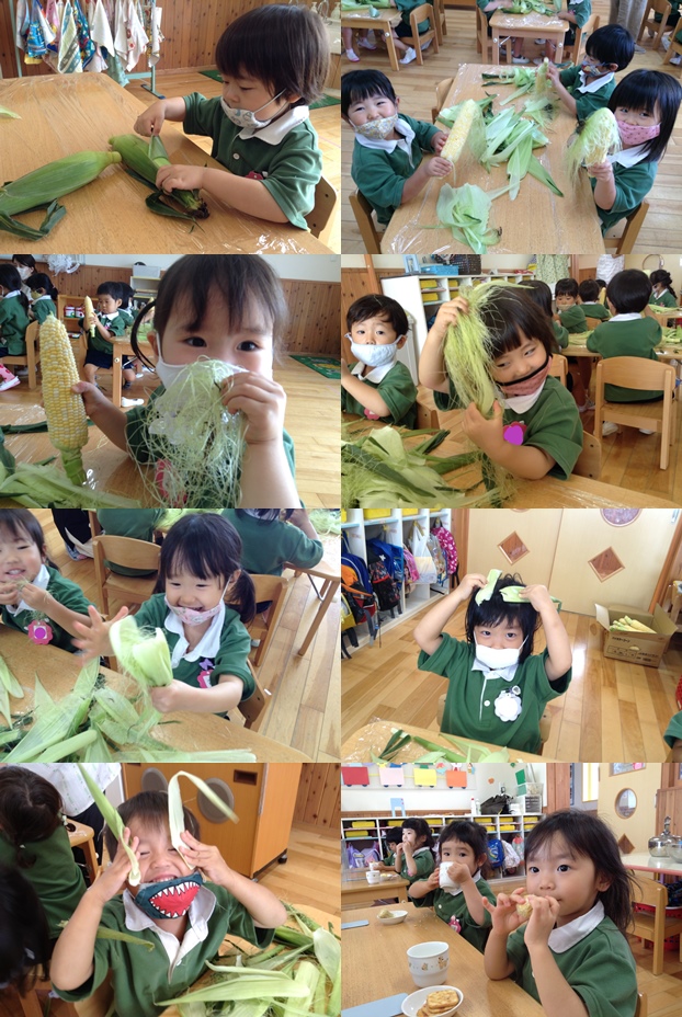 皮を剥いたとうもろこしはおやつで美味しく頂きました♪