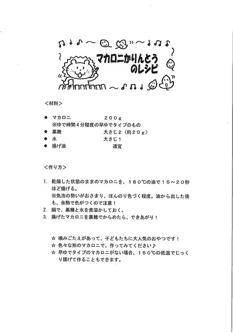 【植園清凉保育園】マカロニかりんとうのレシピ